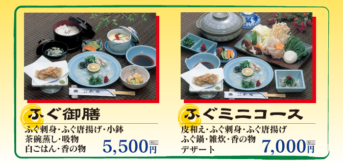 ふぐ皮和え・ふぐ刺身・唐揚・ふぐ寿司